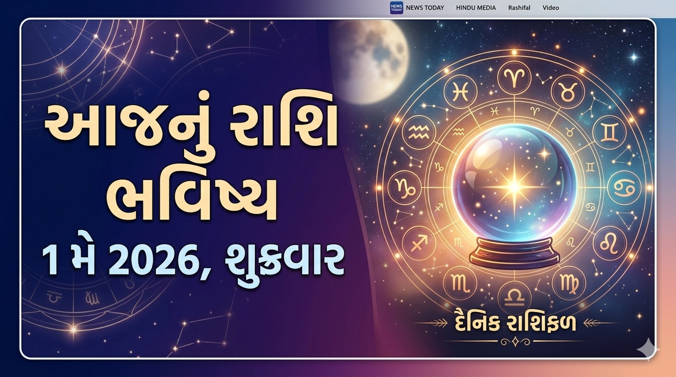 • આજનું રાશિફળ, 1 મે 2026 : જાણો આજનો શુક્રવારનો દિવસ કેવો રહેશે ? Aaj Nu Rashifal