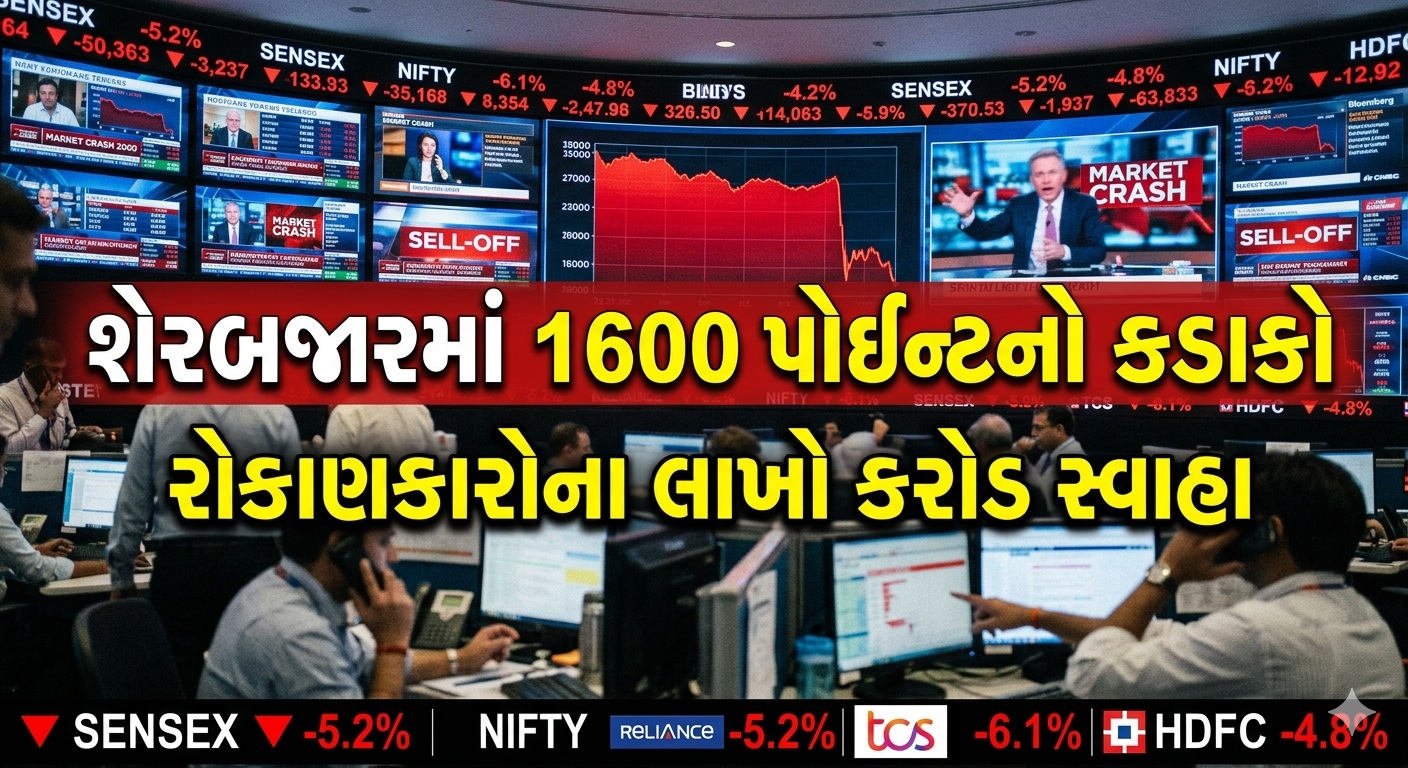 છેલ્લા બે દિવસ ભારતીય શેરબજાર માટે એક દુઃસ્વપ્નથી ઓછા રહ્યા નથી. વિવિધ ક્ષેત્રોમાં વ્યાપક વેચવાલીના કારણે સેન્સેક્સમાં લગભગ 1,600 પોઈન્ટનો મોટો ઘટાડો જોવા મળ્યો.